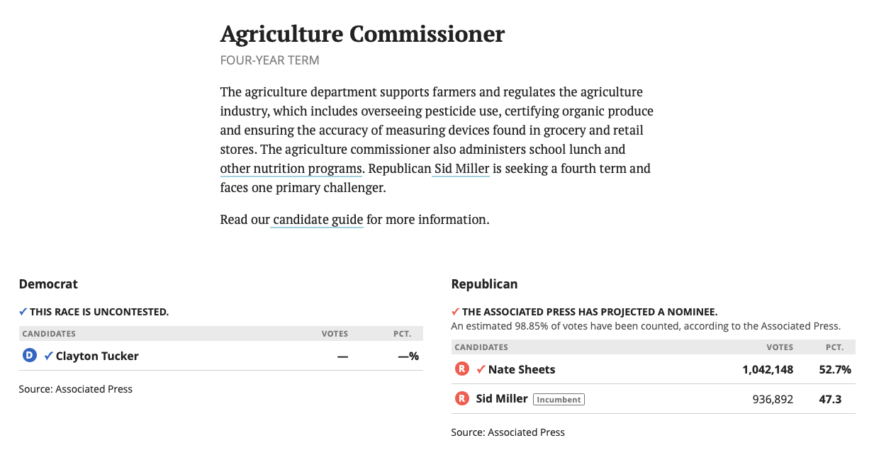 I was contracted by the lovely folks over at the Texas Tribune to manage their election results page for the 2026 Texas primaries. See the final result here.
